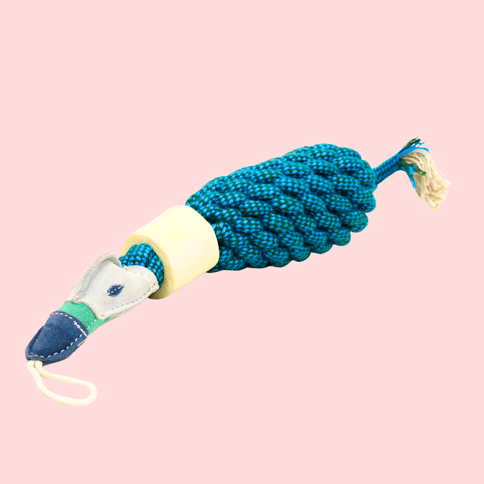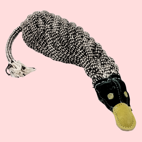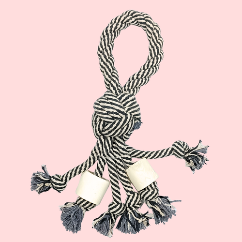 Our dog toys are made using natural cotton rope, suede leather, and natural bones. All materials are carefully selected to be pet-safe, non-toxic, and free from harmful chemicals, ensuring safe and enjoyable playtime for your dog.